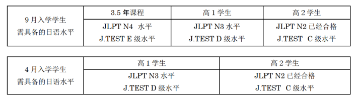 ③ 日語學習經歷須達到1年以上的人員。編入或者轉學人員須具備日語能力。