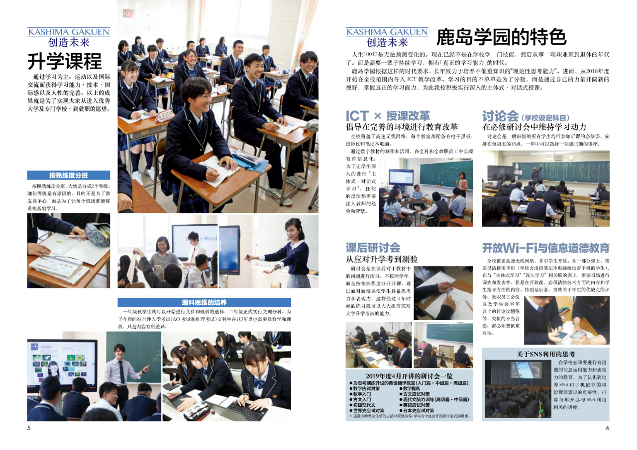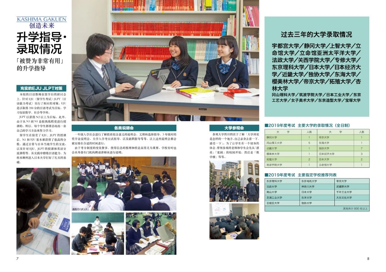 一年級入學后會進行文理科選擇指導、3年級時的獎學金說明會、大學入學考應試指導、以及就職指導等等說明會。